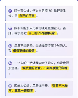1、理解游戏内核,单身是一种主动选择你要明白,单身贵族游戏,内核是什么,它不是被迫单身,而是主动选择,是一种生活状态,游戏里,你是自己的主角,没有队友,也没有对手,你的任务,就是经营好自己,所以,心态很重要,你要享受这个过程,而不是焦虑结果,比如,你可以设定目标,学习新技能,或者培养爱好,把注意力放在自己身上,这样,游戏才好玩。