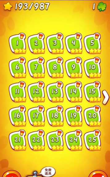 2、利用好各种道具游戏里道具很多,比如泡泡,糖果碰到泡泡会上升,可以到达高处,还有喷气装置,能给糖果加速,改变飞行路线,吹风机能吹动糖果,要灵活组合使用,往往能出奇制胜。