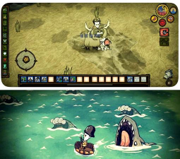 我们谈谈画面,饥荒采用手绘风格,角色设计很卡通,但是,世界色调偏暗,营造出诡异氛围,比如,阴影会蠕动,还有怪诞音效,这些元素结合,让人既紧张,又着迷。