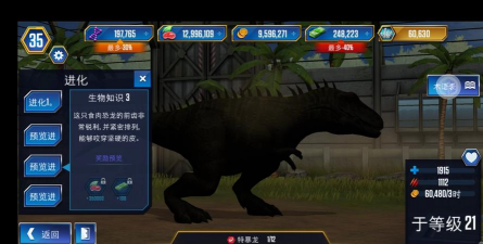 2、恐龙的培育与合成恐龙是公园的灵魂,如何获得它们呢,主要通过孵化器孵化恐龙蛋,恐龙蛋来自完成任务,或是在市场购买,更强大的恐龙,需要通过合成来获得,将两只同类恐龙,放入合成实验室,就能诞生更高阶的品种,合成需要消耗DNA和金币,所以平时要多积累,注意恐龙的舒适度,为它们建造合适的栖息地,否则它们会变得暴躁。