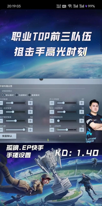 1、基础原理:先懂后调你得明白,灵敏度是什么,简单说,就是你手指滑动,屏幕里准星移动的速度,速度太快,容易飘,速度太慢,跟不上,所以,找到平衡点很重要,而且,每个人的手感都不同,别人的设置,未必适合你,了解原理是第一步。