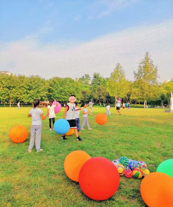 2、气球接力赛接力赛总是充满紧张感,用气球来玩就更特别了,将家庭成员分成两队,每队排成一列,游戏开始时,第一个人需要用双腿夹住气球,然后像袋鼠一样跳到对面,把气球交给下一个队员,过程中气球不能掉,也不能用手扶,如果气球掉了或破了,就要回到起点重新开始,最先完成接力的队伍获胜,这个游戏考验平衡和协作,特别适合亲子一起玩。