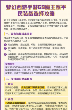魔王,是梦幻手游中的强力法系,他的装备选择,直接决定了战场上的表现,今天,我们就来聊聊,如何为魔王挑选合适的装备,让他成为团队中的核心输出。