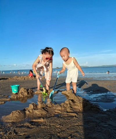 4、寻宝游戏,惊喜无处不在这是充满惊喜的活动,特别适合有孩子的家庭,你可以事先埋好“宝藏”,比如小贝壳,彩色石头,或者用防水纸写个谜语,然后画一张简易藏宝图,让孩子们按图索骥,他们会非常投入,仔细搜寻每一寸沙地,找到“宝物”时的欢呼,是沙滩上最美的声音,这个游戏不仅能玩,还能培养观察力和耐心。
