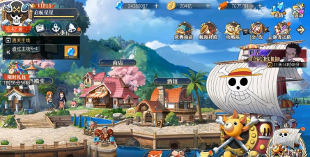 2、策略养成,打造你的专属船队当然,收集伙伴只是开始,如何培养他们,才是关键,游戏提供了,深度养成系统,每个角色都能,通过多种途径变强,你可以为他们,升级技能,突破极限,觉醒潜能,甚至搭配,专属的装备与宝石,不同的角色组合,还能触发,强大的羁绊效果,让你的队伍实力倍增,除了个人养成,船只系统也至关重要,你可以建造并升级,自己的海贼船,从小型帆船,到巨型战舰,自由定制外观与功能,率领你的舰队,征服七海,成为真正的海上霸主。