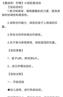 4、融入故事,玩中学道理你可以编个小故事,比如“小熊猫下山”,让孩子模仿熊猫翻滚下山,途中遇到“小河”(垫子)要小心,这样游戏更有趣,还能教孩子一些道理,玩完之后,记得要放松,可以互相拍拍背,说说刚才哪里最有趣。