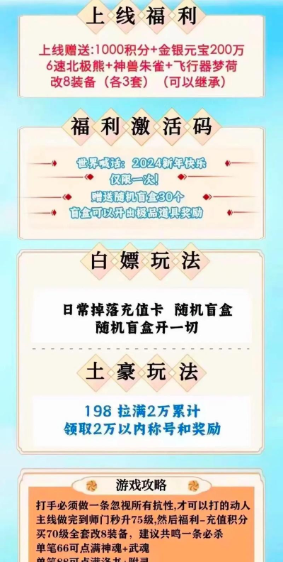 1、新区福利,究竟有哪些?我们聊聊福利,新服开启,福利自然多,比如,登录就送元宝,还有,经验加成道具,甚至,稀有宠物礼包,这些福利,千万别错过,因为,它们能帮你,快速度过新手期,所以,上线第一件事,就是领完所有福利。