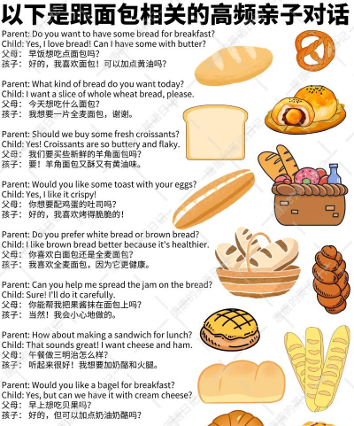 3、情景对话,模拟真实场景光认单词还不够,要会用才行,可以模拟早餐场景,家长拿起面包问,“What is this?”,引导孩子回答,“It's bread.”,接着可以继续问,“Do you want some bread?”,让孩子尝试用,“Yes, please.”或“No, thank you.”来回答,通过简单对话,让孩子在情境中,学会使用英语。