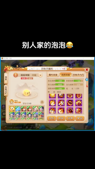 3、血耐生存流,体耐加点稳如泰山与全力加点相反,血耐加点追求的是站得住,将属性点主要分配给体质和耐力,大幅提升泡泡的气血和防御,让它成为一个难以被击倒的肉盾,这种加点的泡泡,生存能力极强,可以在战场上持续提供伤害或控制,非常适合在难度较高的剧情、擂台PK中使用,它能有效吸引火力,保护队伍里的其他脆皮单位,虽然单次伤害不如全力泡泡,但凭借持久的战斗力,往往能笑到最后。