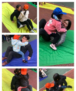 4、 肚皮“躲猫猫”用一条柔软的小毯子,或者你的衣服,轻轻盖住你的肚子,然后对宝宝说,“咦,妈妈的肚子不见了”,接着,突然掀开毯子,笑着说,“找到啦”,宝宝会咯咯笑,你可以反复玩,变化掀开的速度,和表情,这个简单的游戏,能帮助宝宝理解,“客体永存”的概念,即东西不见了,还会回来,是重要的认知发展。