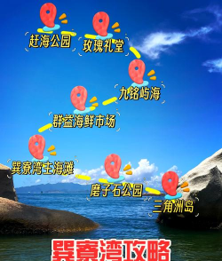 2、必玩景点与特色体验巽寮湾的海滩很干净,沙子细腻柔软,光脚踩上去很舒服,你可以在这里晒太阳,或者下海游泳,海水清澈见底,能看到小鱼游过,除了海滩,三角洲岛值得一去,需要坐快艇上岛,岛上风景独特,岩石造型奇特,拍照特别出片,喜欢刺激的话,试试水上摩托,或者帆船出海,感受海风的速度,傍晚时分,一定要看日落,天空被染成金色,画面非常浪漫,另外,海鲜市场别错过,可以自己挑选,然后找餐厅加工,品尝最新鲜的味道。