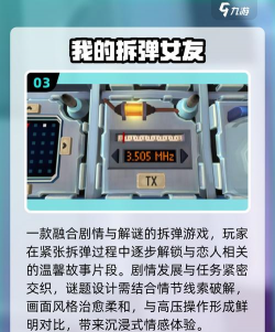手机上也有拆弹游戏,操作比较简单,画面卡通一些,但紧张感不减,通常有时间限制,你需要快速做出判断,这类游戏适合碎片时间玩,随时来一局,锻炼反应能力。
