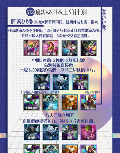 接下来说说出装思路,第一件通常出时光杖,增加血量和法强,还有蓝量,非常契合乌鸦,让他能持续作战。