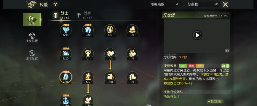 加点不能平均,要有侧重点,前期升级,主点输出技能,比如滚动攻击,清怪效率高,中期PK,就要多点控制,比如升龙斩,打断对手很有效,后期团战,保命技能要加满,比如高地人,能救你一命,记住,资源有限,先点核心技能。