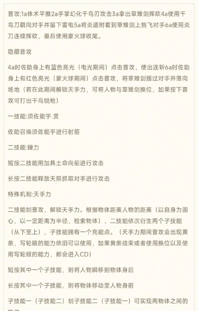 佐助的技能,速度很快,而且,伤害也不低,一技能千鸟,可以快速突进,二技能豪火球,能远程消耗,大招麒麟,范围很大,但是,技能有后摇,所以,释放时机,要特别小心。