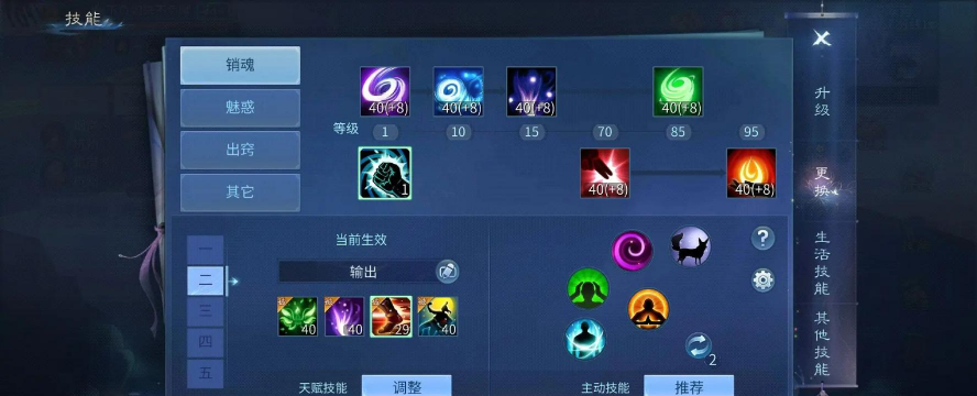 先看技能选择异人的技能很多,但核心就那么几个,白骨令必须点满,这是召唤核心,然后青木颂也要高,它能强化宝宝,离魂赋是控制,打团很有用,血饲可以加攻,但会掉血,要谨慎使用。