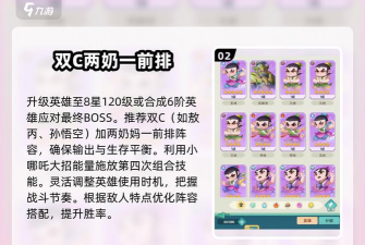 游戏里有七个葫芦娃,每个娃,能力都不同,大娃力气大,适合近战,二娃有千里眼,能远程攻击,所以,选谁很重要,你得看关卡特点,比如,打近战多的怪,选大娃就很好,如果敌人远程多,二娃更合适,当然,你也可以,按自己喜好来,不过,了解特性,通关会更顺。