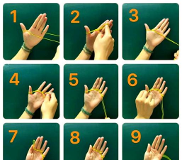 先看基本手法你要准备一根绳子,长度大概一米二就行,然后,把两头打个结,做成一个绳圈,接着,把绳圈套在双手上,用拇指和小指撑开,这样,就准备好了基础框架,其实,手法有很多种,但都是从这开始的。