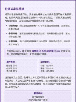 加点,是物理伤害的基础,全力加点,伤害最高,但生存能力弱,三力一敏,或者两力两敏,更均衡一些,适合PK,属性选择上,力量直接加物伤,这是根本,敏捷影响出手速度,也很重要,体质和灵力,对物理输出来说,收益不高,除非你想走特殊路线,所以,想追求极致伤害,力量必须优先堆高。