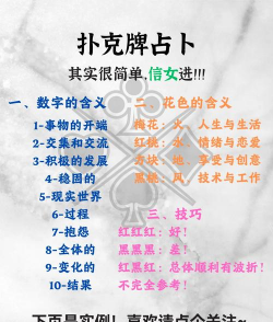 记住每张牌的含义,这很重要,红桃代表爱情和情感,方块象征财富和事业,梅花关联学业和人际,黑桃则暗示挑战,数字牌有基本意义,J、Q、K代表人物,A则是开始。