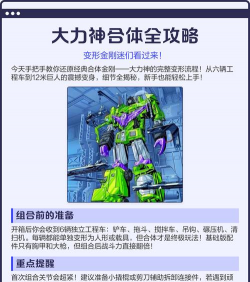 1、选择你的阵营与角色你需要选择一个阵营,是汽车人,还是霸天虎,每个阵营都有独特魅力,接着,挑选你心仪的角色,擎天柱威猛,大黄蜂灵活,威震天霸气,不同角色,技能和定位完全不同,了解他们的特点,是胜利的第一步,比如,擎天柱擅长正面强攻,适合新手,大黄蜂机动性强,适合游走偷袭,选对角色,能让你的游戏体验,直接提升一个档次。